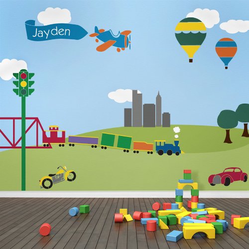 Trains Airplanes Cars Room Wall Stencils for Boys Room Transportation Theme Wall Mural